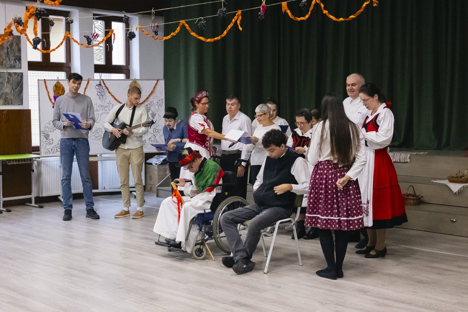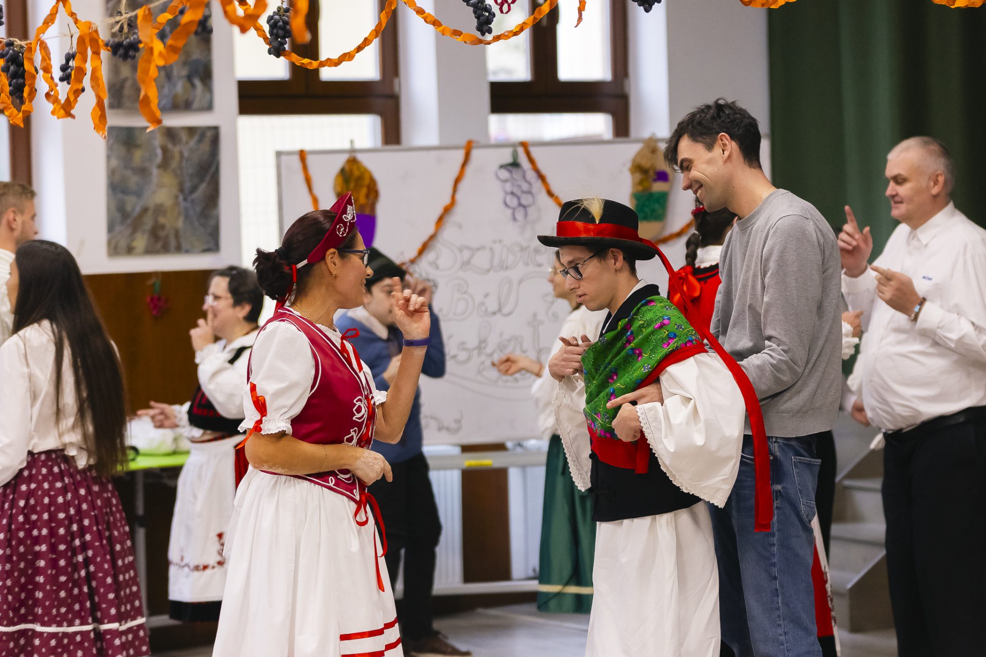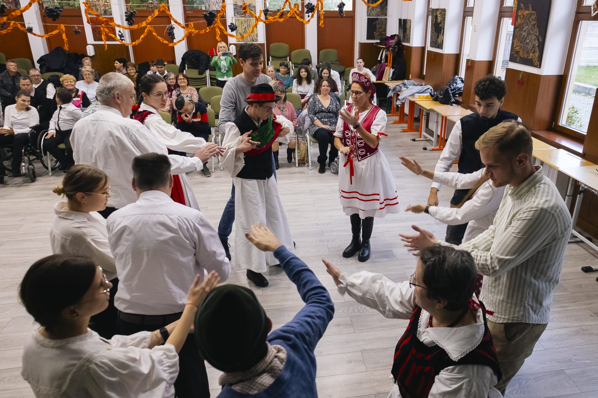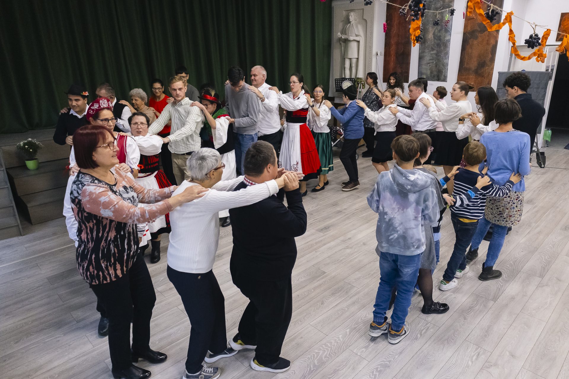 This year, we also held our Harvest Ball Differently, which welcomed attendees as a traditional event. Similar organizations and institutions took part, but everyone was warmly invited! The ball began with a short, colorful performance: autumn poems, songs, and folk dances entertained the audience, and then we invited everyone to the dance floor. Meanwhile, the guests enjoyed delicious snacks and fresh grapes. The program continued with great excitement with a raffle, where everyone left smiling and with a small prize.