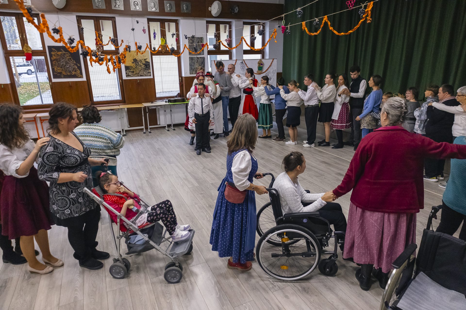 Idén is megrendeztük a Szüreti Bál Másként mulatságunkat, amely már hagyományos eseményként várta az érdeklődőket. Hasonló szervezetek és intézmények vettek részt, de mindenkit szívesen láttunk! A bál rövid, színes előadással indult: őszi versek, énekek és néptánc szórakoztatta a közönséget, majd mindenkit a táncparkettre hívtunk. Közben finom falatok és friss szőlő kínálta magát a társaságnak. A program nagy izgalommal folytatódott a tombolasorsolással, ahol mindenki mosollyal és nyereménnyel távozott.